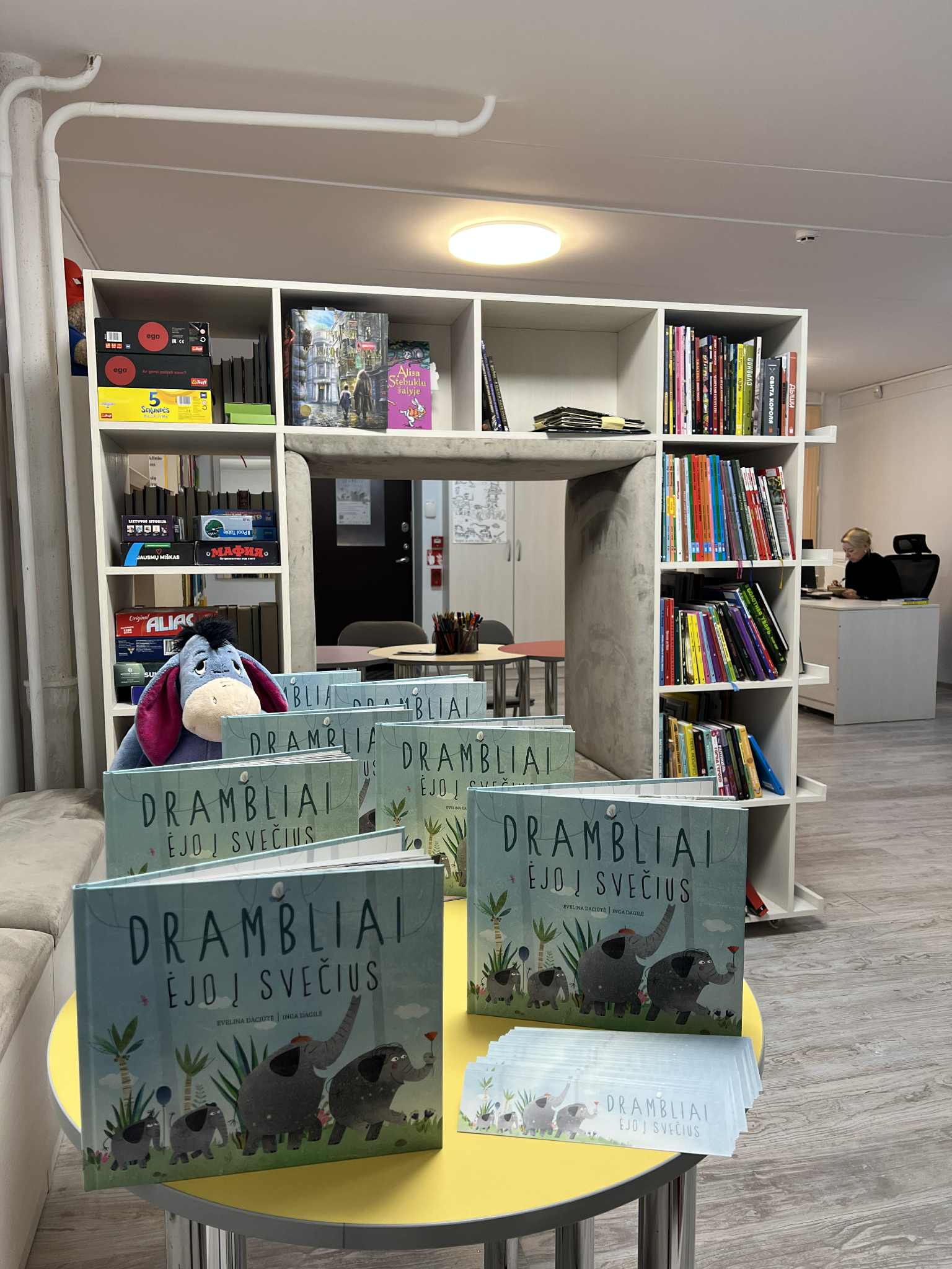 Praėjusį rudenį projektą „Knygų startas“ papildė dar viena knyga – rašytojos Evelinos Daciūtės ir iliustruotojos Ingos Dagilės kūrinys „Drambliai ėjo į svečius“.