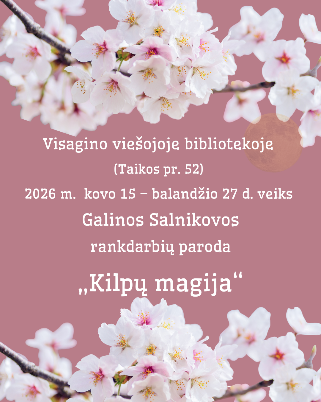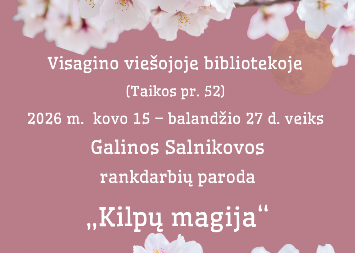Visagino viešojoje bibliotekoje atidaryta jauki ir šviesi Galinos Salnikovos paroda „Kilpų magija“, kviečianti lankytojus pasigrožėti kruopščiai vašeliu nertomis vasarinėmis kepurėmis. Ekspozicijoje pristatomi darbai atskleidžia tradicinio nėrimo grožį, meistrystę ir autorės kūrybinę fantaziją.