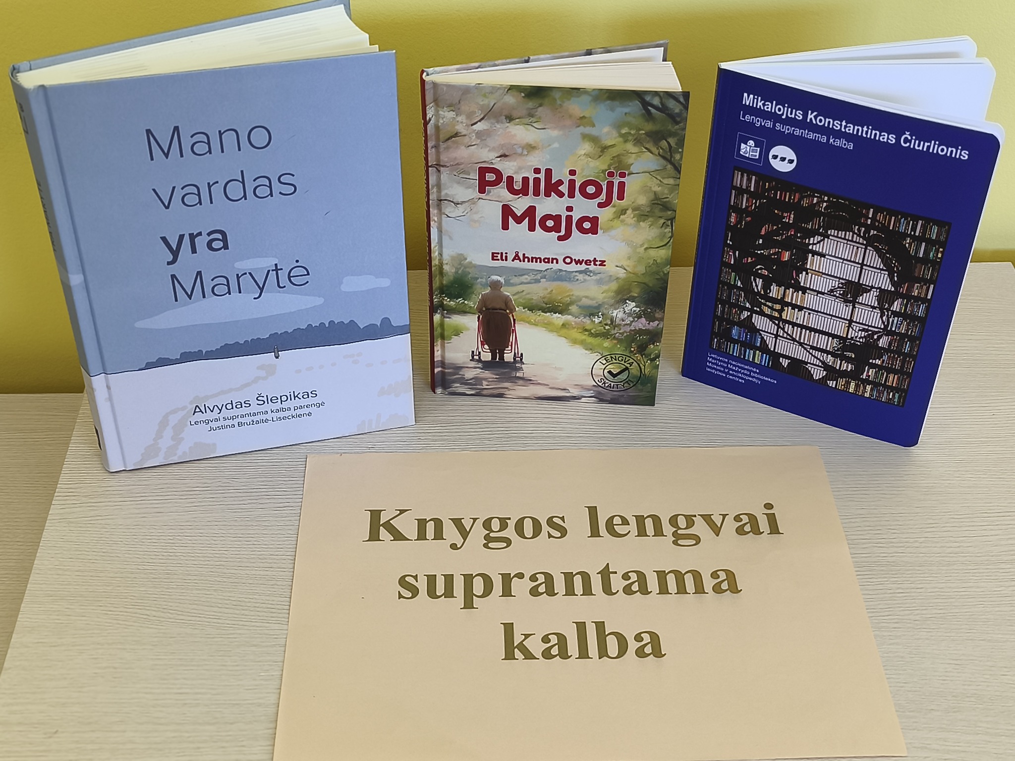 Bibliotekoje yra knygų, parašytų lengvai suprantama kalba.