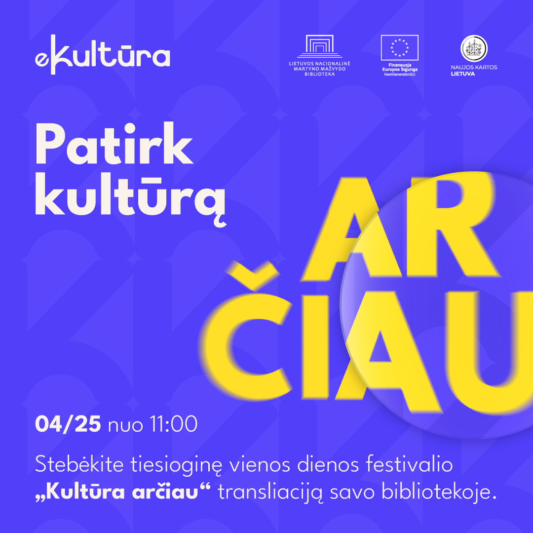 Kviečiame 2026 m. balandžio 25 d. (šeštadienį), nuo 11:00 iki 16:30 val., stebėti vienos dienos festivalio „Kultūra arčiau“ tiesioginę transliaciją!