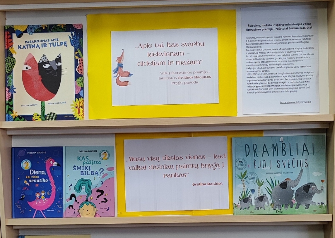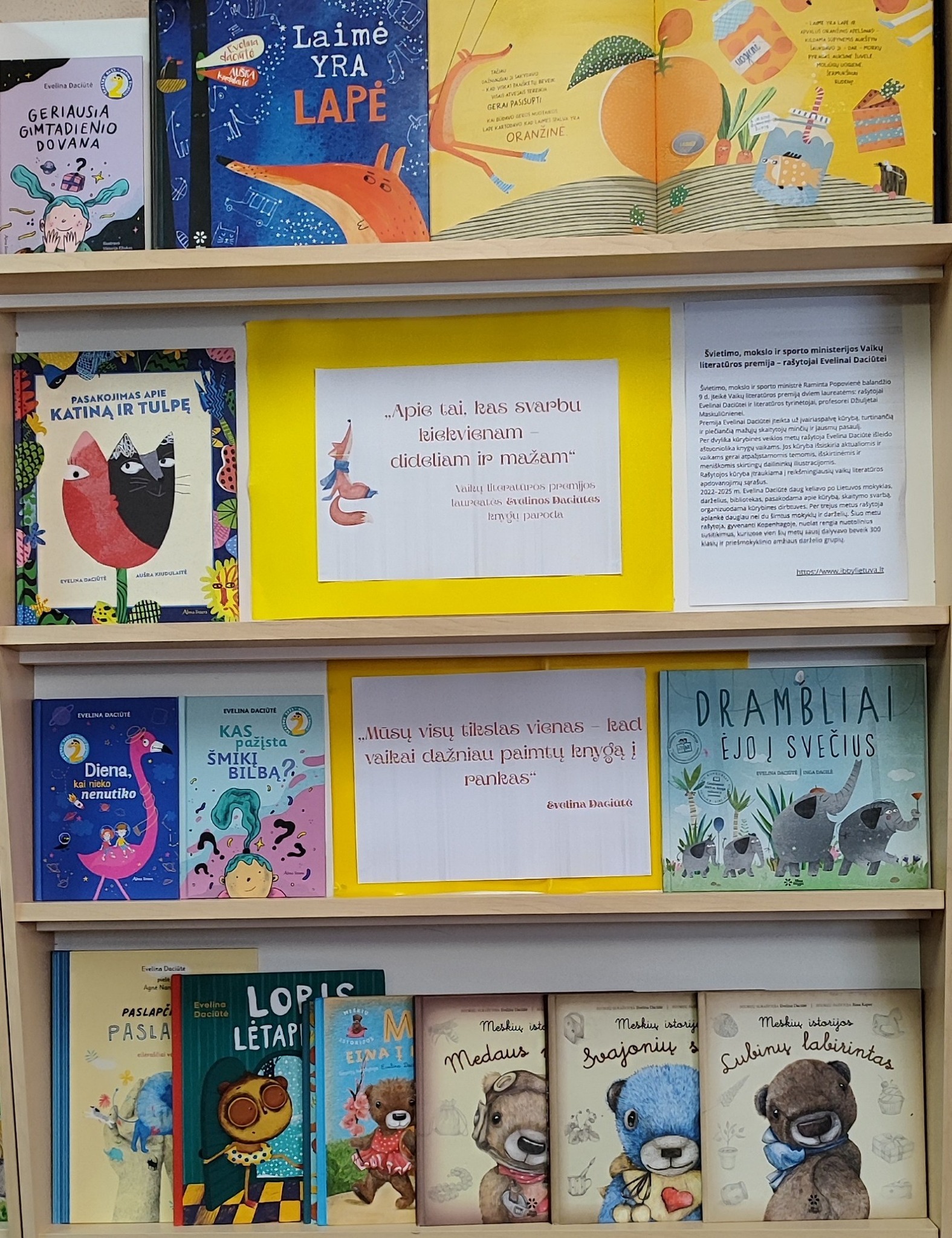 Šia proga Visagino viešojoje bibliotekoje (Sedulinos al. 14/3) parengta Evelinos Daciūtės knygų paroda „Apie tai, kas svarbu kiekvienam – dideliam ir mažam“. Kviečiame susipažinti su rašytojos kūryba, atrasti šiltas, jautrias ir įkvepiančias istorijas, kurios kalba apie draugystę, jausmus ir kasdienius gyvenimo stebuklus.
