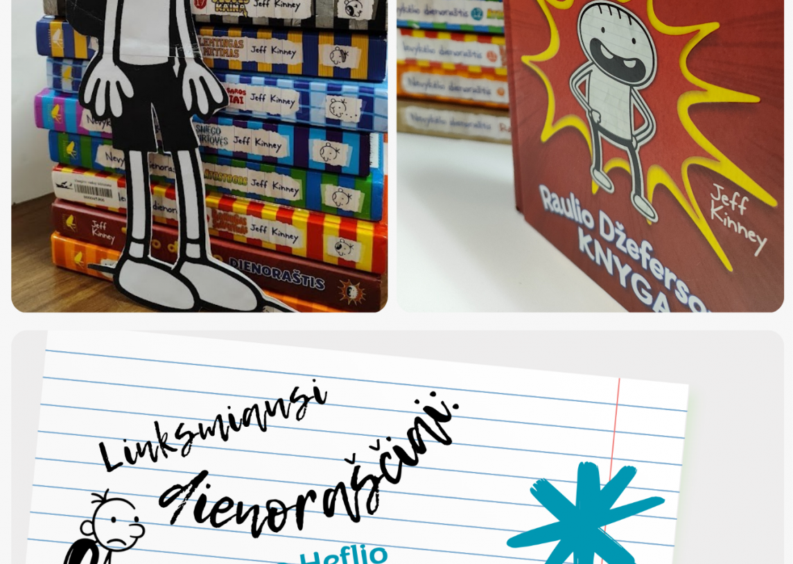 Visagino viešosios bibliotekos filiale parengta literatūros paroda „Linksmiausi dienoraščiai: Grego Heflio bėdos ir pergalės“. Kviečiame apsilankyti, susipažinti su linksmiausiomis Grego Heflio istorijomis, pavartyti serijos knygas ir prisiminti juokingiausius veikėjų nuotykius.