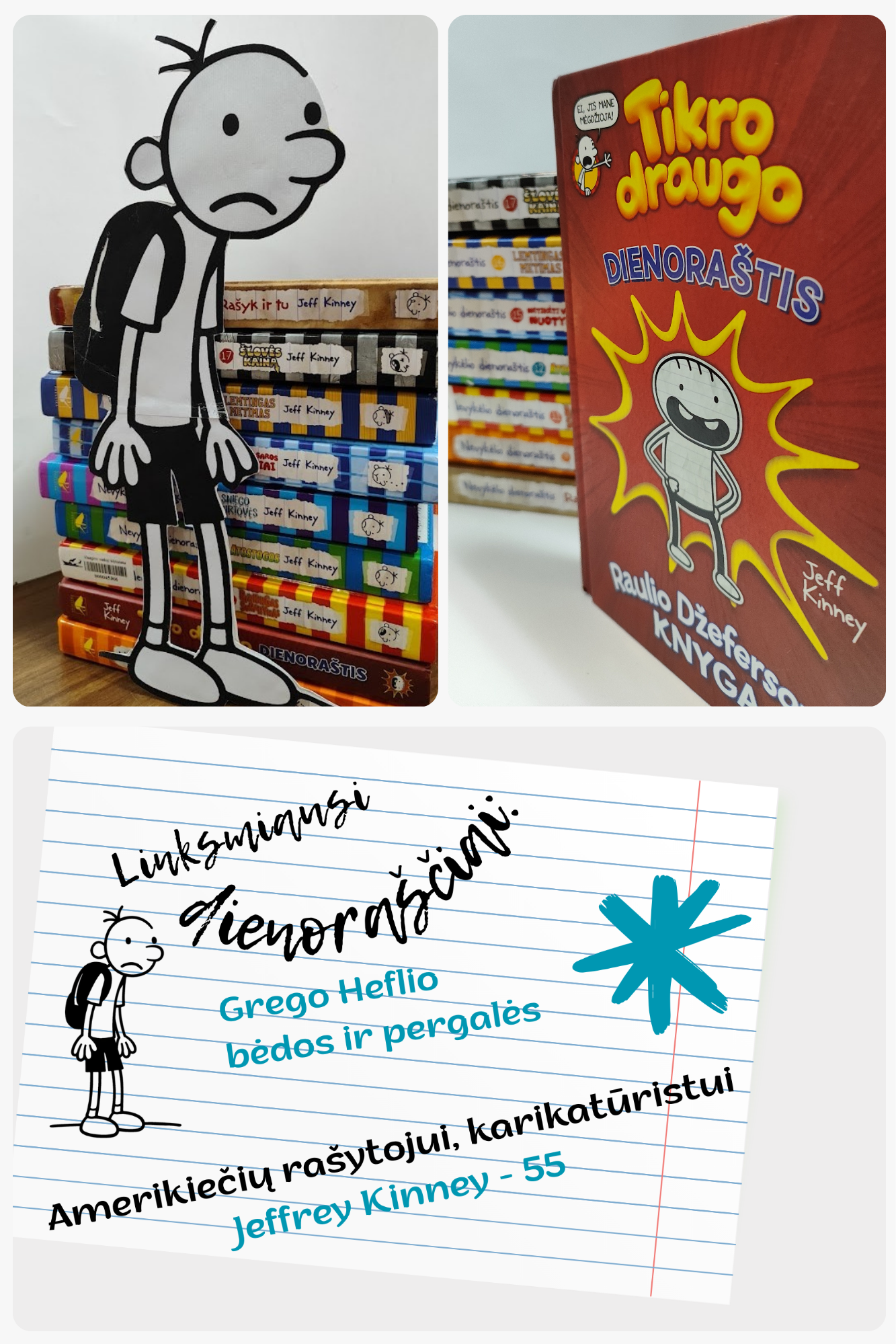 Literatūros paroda „Linksmiausi dienoraščiai: Grego Heflio bėdos ir pergalės“, skirta amerikiečių rašytojo, karikatūristo Jeffrey Kinney 55-osioms gimimo metinėms
