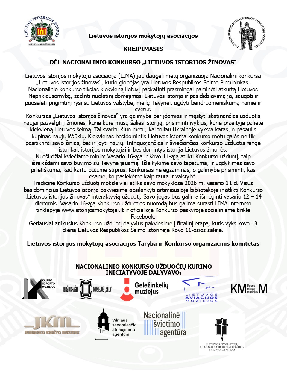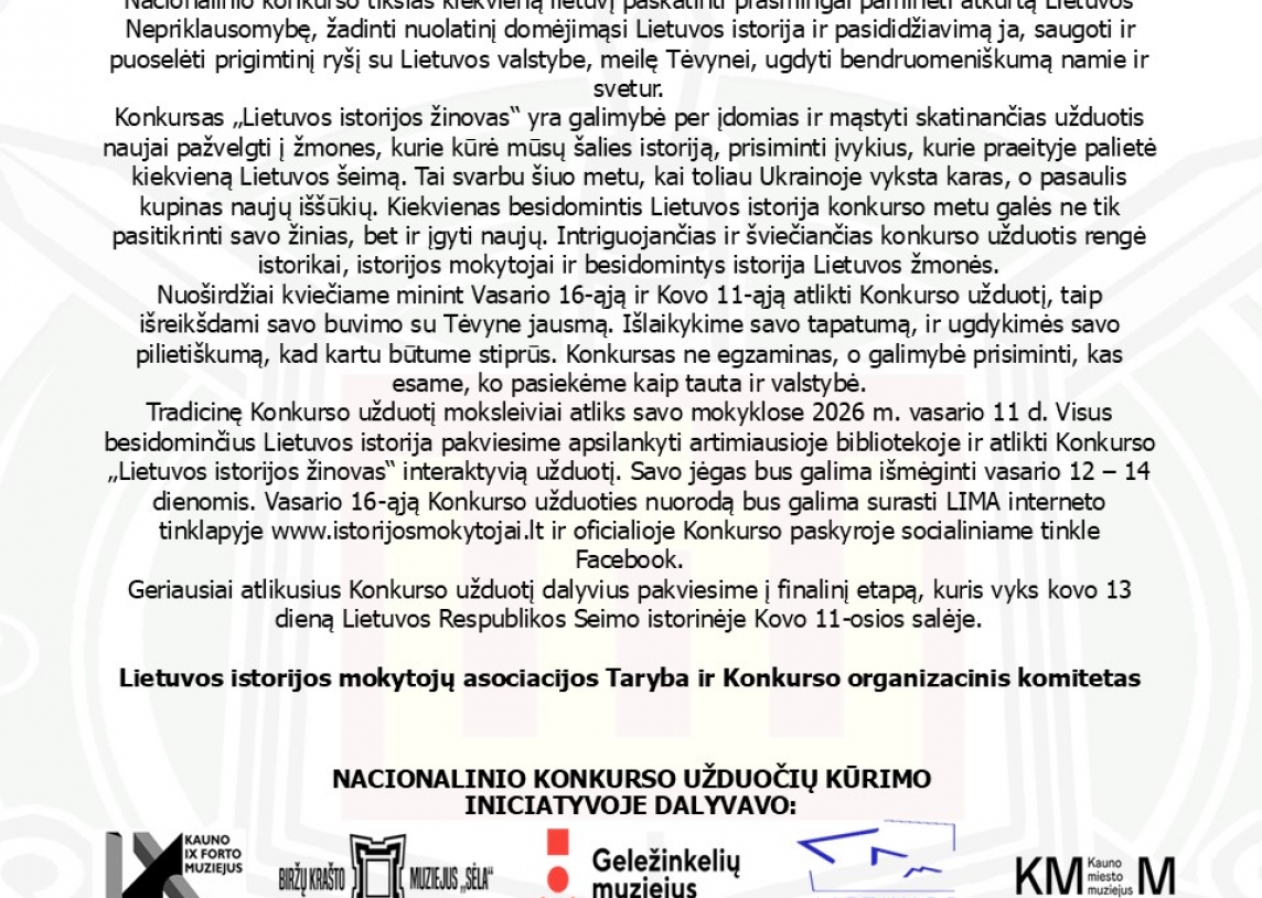 Lietuvos istorijos mokytojų asociacijos Tarybos ir Konkurso organizacinio komiteto informacija