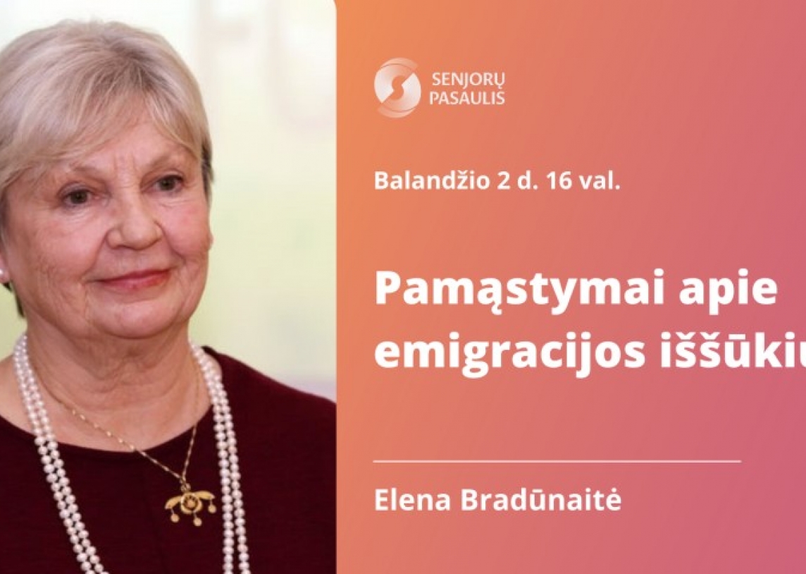 „Senjorų pasaulio“ atviroje ketvirtadienio paskaitoje kviečiame į susitikimą su Elena Bradūnaite-Aglinskiene gyvenančia JAV lietuvių etnologe, tautosakininke.