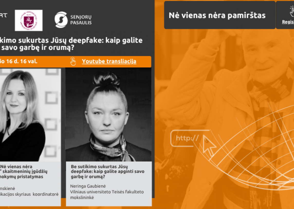 Projekto „Nė vienas nėra pamirštas“ nuotolinė paskaita „Be sutikimo sukurtas Jūsų deepfake: kaip galite apginti savo garbę ir orumą?”