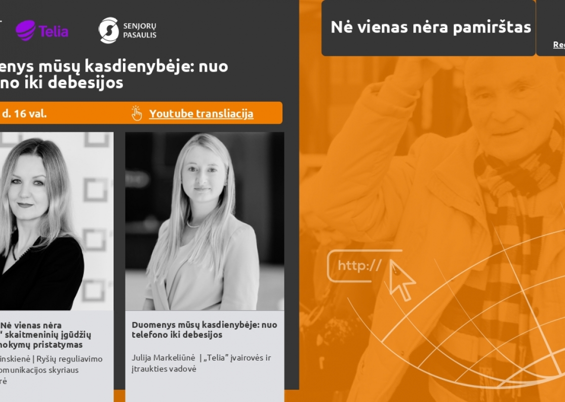 Ryšių reguliavimo tarnybos inicijuotas ir LR Prezidento globojamas skaitmeninių įgūdžių lavinimo projektas „Nė vienas nėra pamirštas“ ir vėl Jus kviečia į nuotolinę paskaitą!