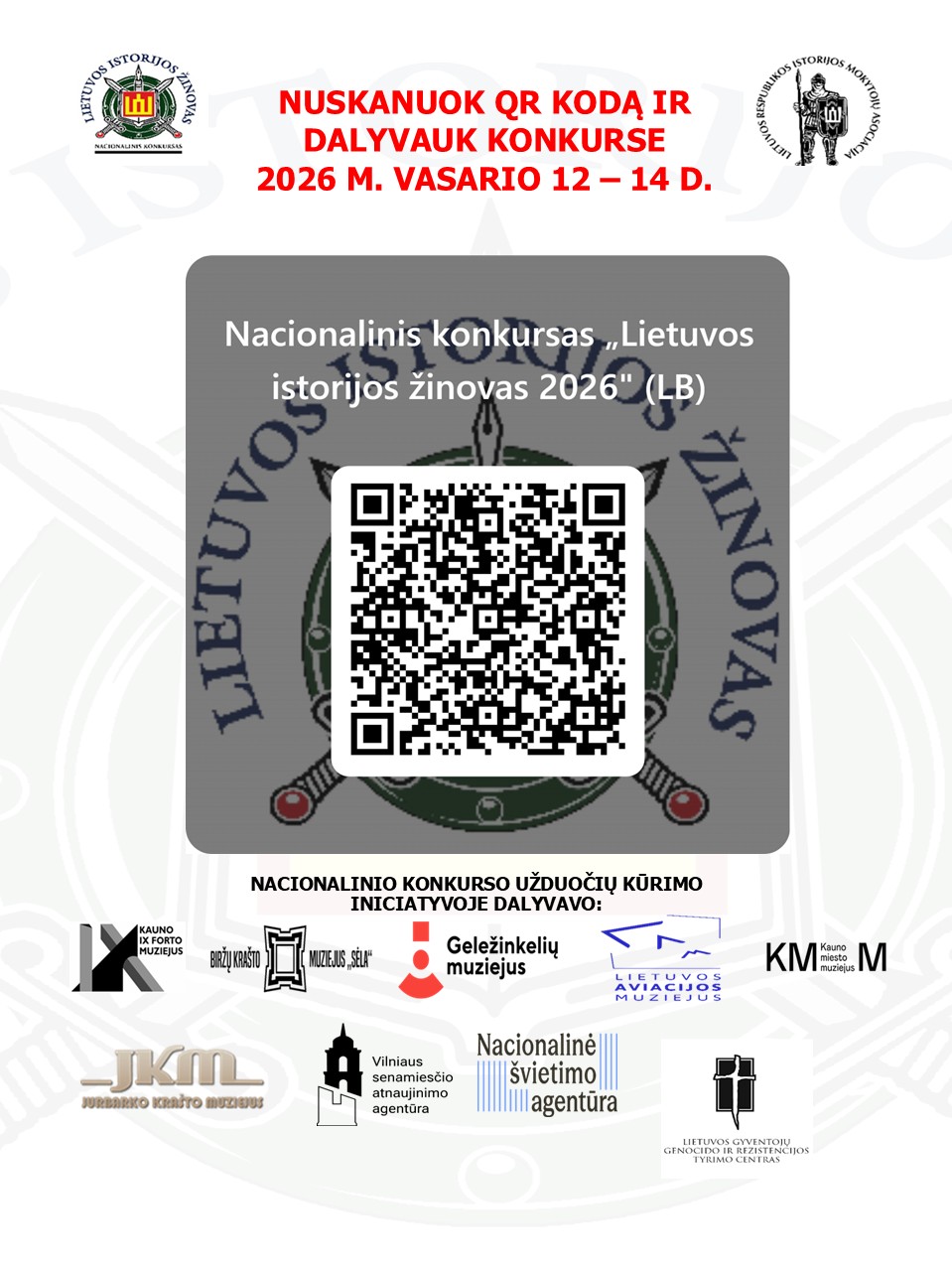 Kviečiame dalyvauti nacionaliniame konkurse „Lietuvos istorijos žinovas 2026“ ir pasitikrinti savo žinias apie Lietuvos istoriją!