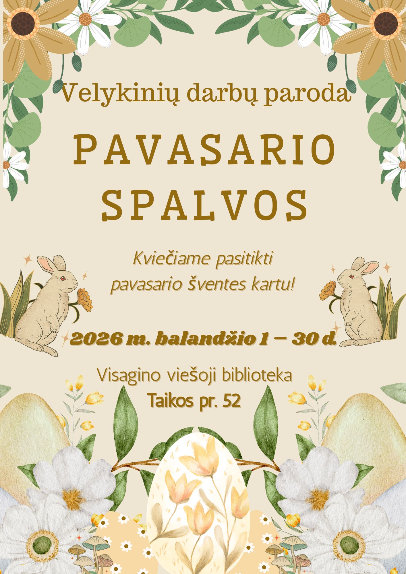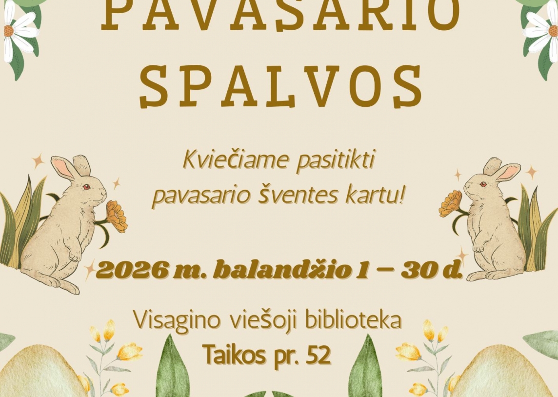 Nuo 2026 m. balandžio 1 dienos Visagino viešojoje bibliotekoje (Taikos pr. 52) pradedama eksponuoti velykinė paroda, skirta gražiausiam metų atgimimui paminėti.