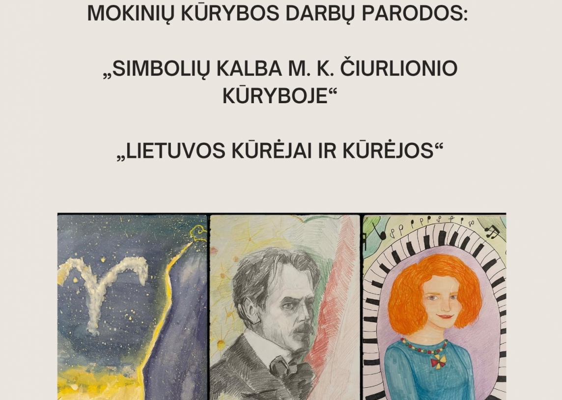 Parodoje „Simbolių kalba M. K. Čiurlionio kūryboje“ jaunieji menininkai interpretuoja garsaus lietuvių kūrėjo kūrybą, atskleisdami simbolių, spalvų ir muzikos ryšius. Tai subtilus bandymas pažvelgti į kūrybos pasaulį jaunų žmonių akimis.