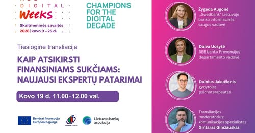 2026 m. kovo 19 d. vyko nuotolinė transliacija „Kaip atsikirsti finansiniams sukčiams: naujausi ekspertų patarimai“, organizuota „Skaitmeninės savaitės 2026“ akcijos metu.