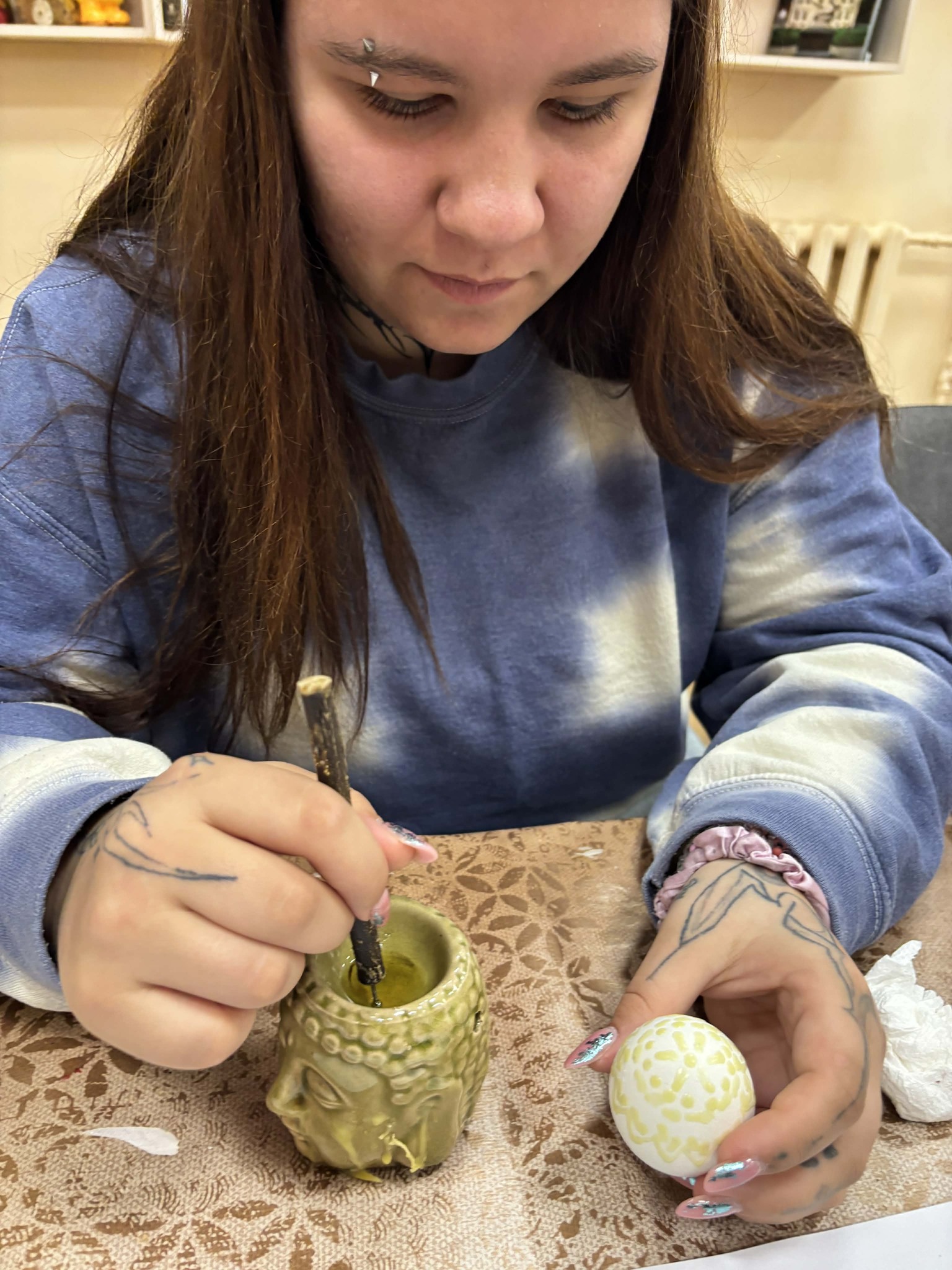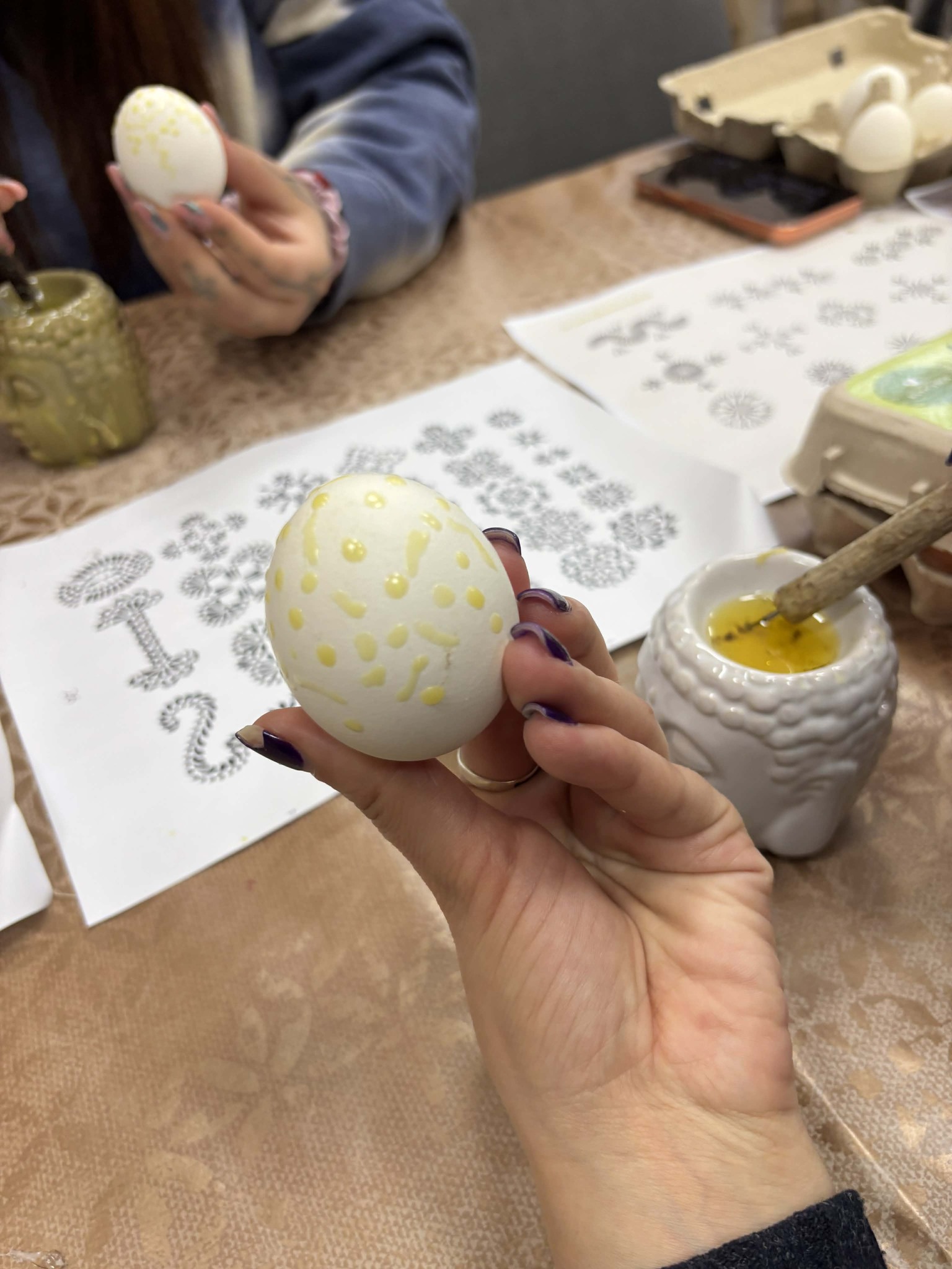 Pradžioje margučių marginimas kai kuriems dalyviams atrodė nedrąsus ir kiek nedrąsiai sekėsi imtis kūrybos. Tačiau netrukus įsitraukėme į procesą, atsipalaidavome ir pajutome, koks tai smagus bei kūrybiškas užsiėmimas. Užsiėmimo pabaigoje visi džiaugėsi savo sukurtais darbais.