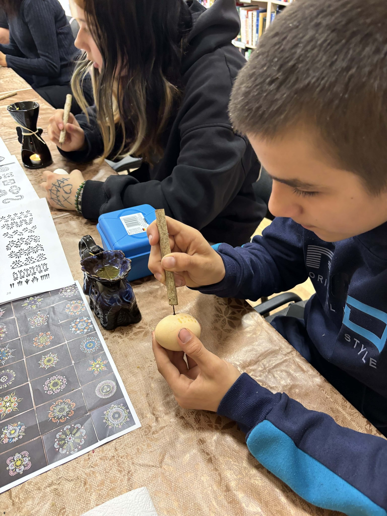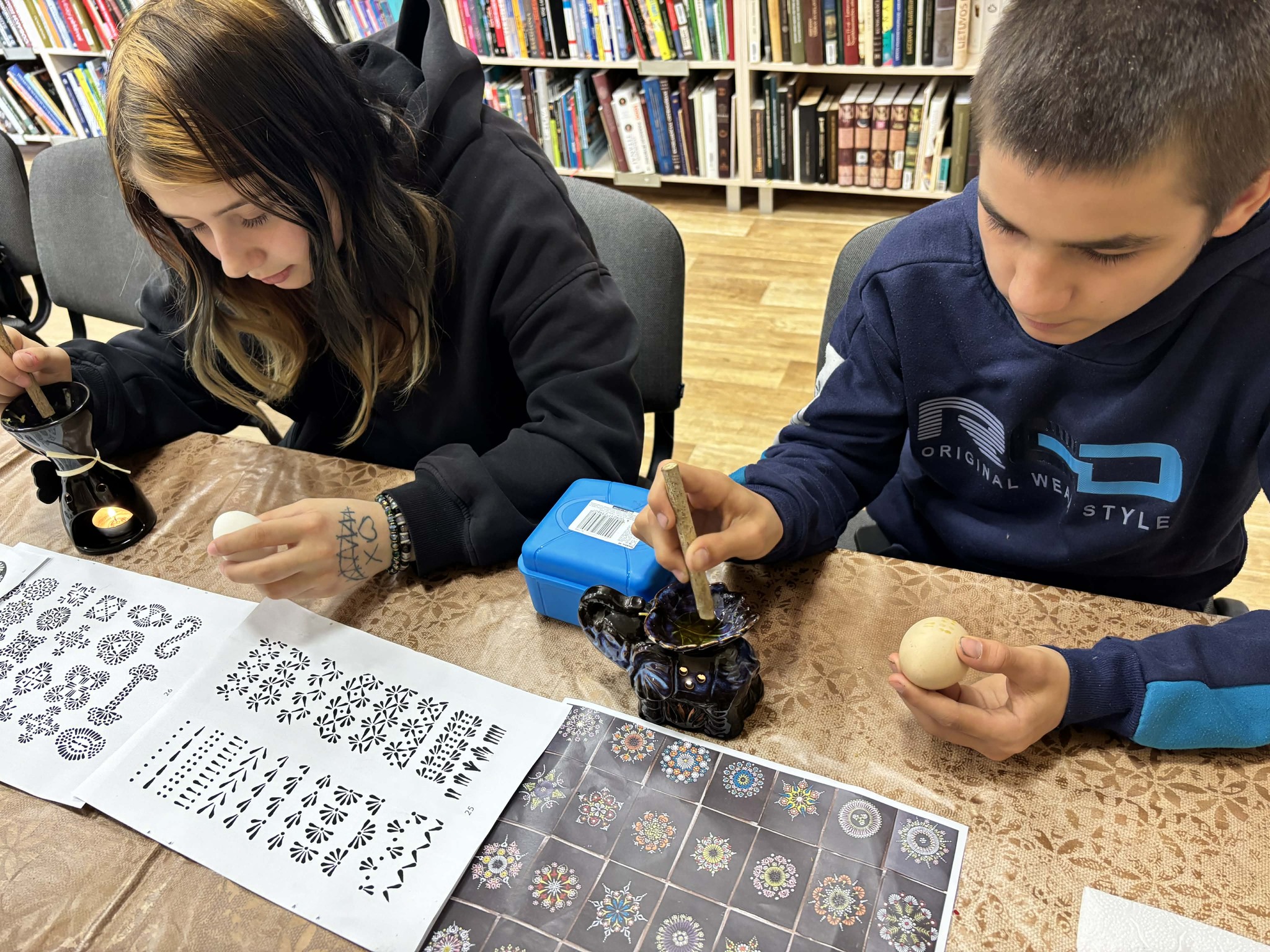 Užsiėmimo pradžioje žiūrėjome filmuką apie Velykines tradicijas Lietuvoje, kuris padėjo geriau suprasti šios šventės prasmę ir papročius. Taip pat susipažinome su Visagino viešojoje bibliotekoje sukurtu filmuku, kuriame buvo parodyta, kaip įvairiais būdais galima marginti kiaušinius.
