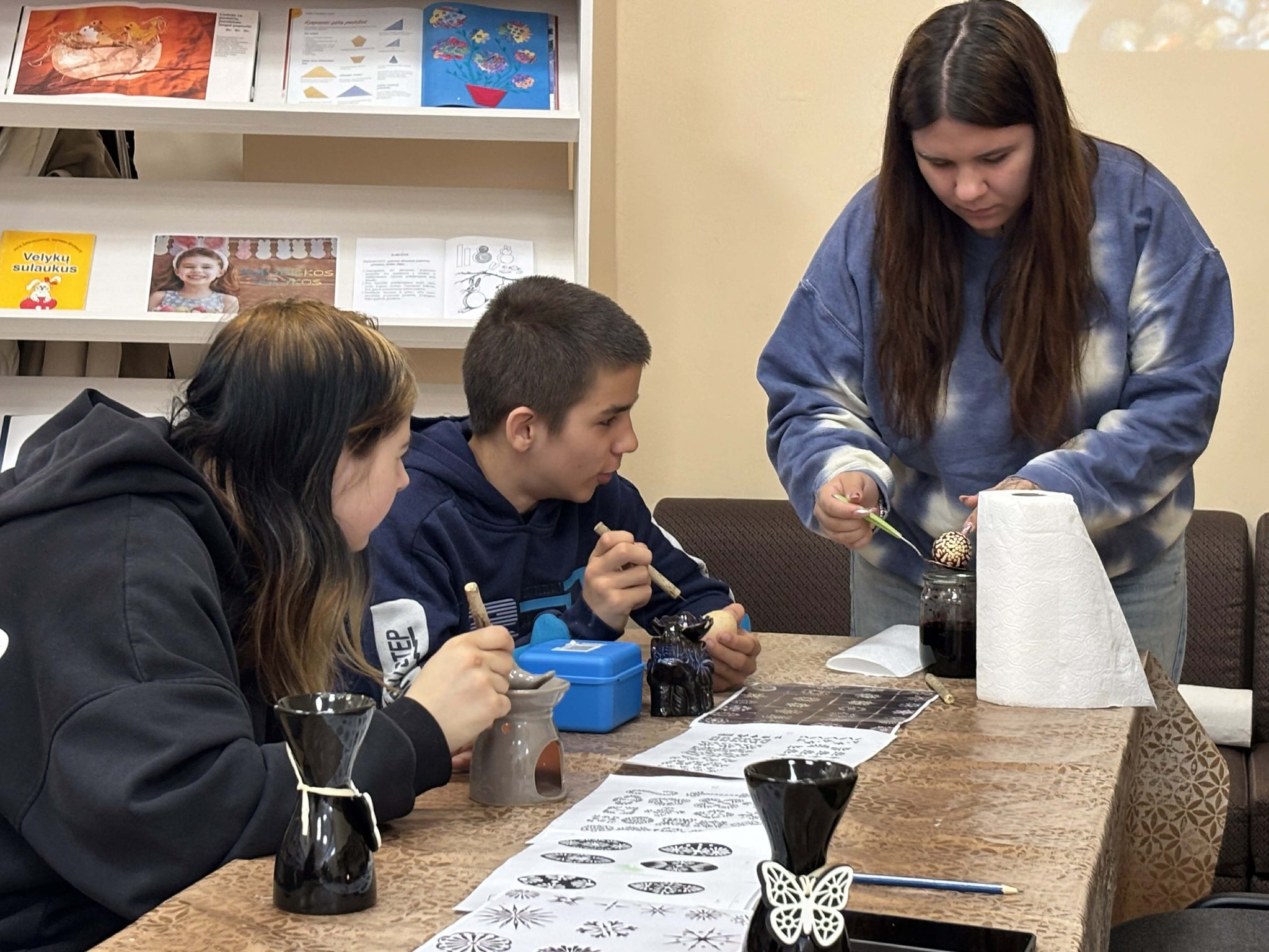 Šiandien bibliotekoje (Taikos pr. 52) vyko kūrybinis-edukacinis užsiėmimas „Atvelykis ateina“. Renginio metu dalyviai turėjo galimybę ne tik smagiai praleisti laiką, bet ir daugiau sužinoti apie lietuviškas Velykų tradicijas.