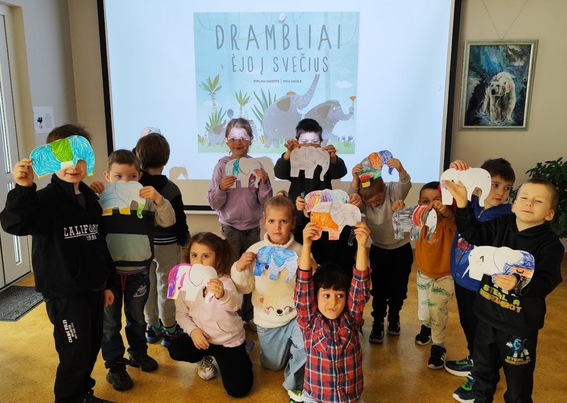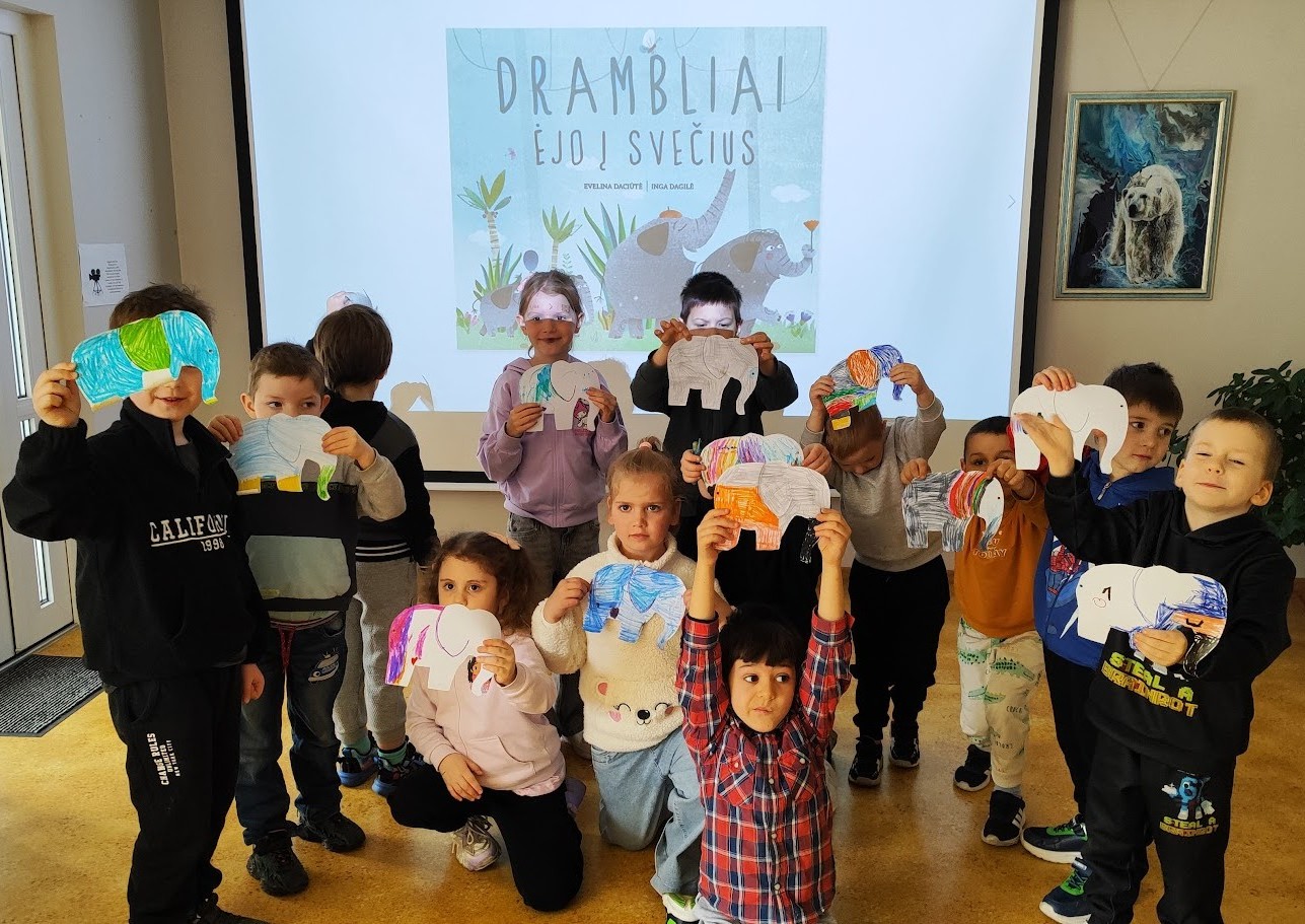 Užsiėmime mažieji dalyviai iš lopšelio-darželio „Auksinis raktelis“ „Varpelių“ grupės (mokytoja Tatjana Kovaliova) leidosi į nuotaikingą kelionę kartu su Evelinos Daciūtės knygos „Drambliai ėjo į svečius“ herojais. Ši knyga taip pat yra projekto „Knygų startas“ dalis – iniciatyvos, skatinančios ankstyvą vaikų skaitymą ir pažintį su knygomis nuo pat mažens.