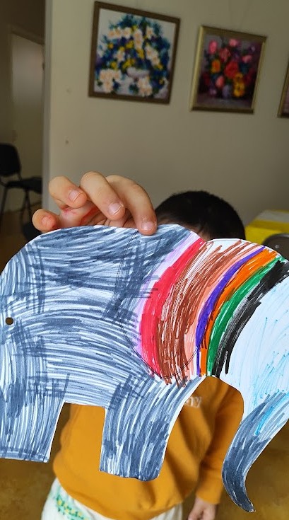 Skaitant šią žaismingą istoriją, vaikai ne tik įdėmiai klausėsi, bet ir aktyviai įsitraukė į veiklą: skaičiavo drambliukus, kūrė savo spalvingus darbelius bei smagiai šoko pagal edukacinę dainelę „Drambliai ėjo į svečius“, sukurtą pagal to paties pavadinimo Evelinos Daciūtės ir Ingos Dagilės knygą. Animacinėje dainelėje panaudotos knygos iliustracijos, kurias sukūrė dailininkė Inga Dagilė, o tekstą jai parašė vaikų poetė Indrė Pliuškytė-Zalieckienė.