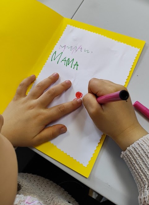 Kūrybinėje dalyje mažieji dalyviai gamino spalvingus atvirukus mamoms – kupinus meilės, dėkingumo ir gražiausių jausmų. Taip pat vaikai atnešė nupieštus savo mamų portretus, kurie papuoš biblioteką Motinos dienos proga.