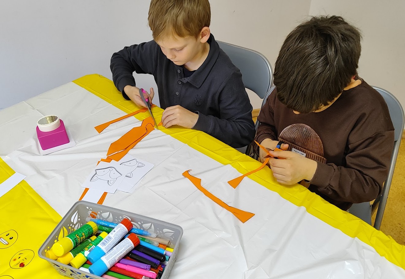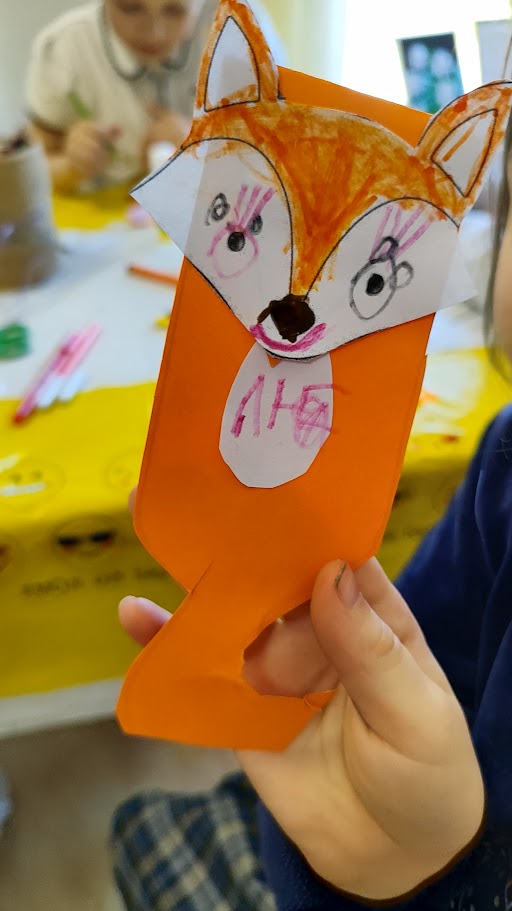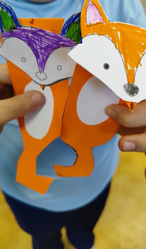 Po skaitymo vaikai patys kūrė – gamino spalvingus knygų skirtukus. Kūrybinė veikla ne tik suteikė daug džiaugsmo, bet ir dar labiau suartino su istorija apie lapę, kuri atrado knygų pasaulio magiją.
