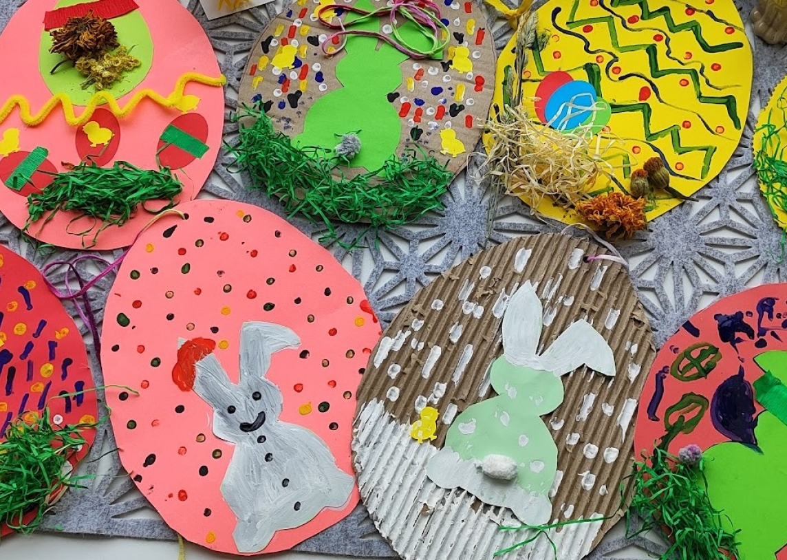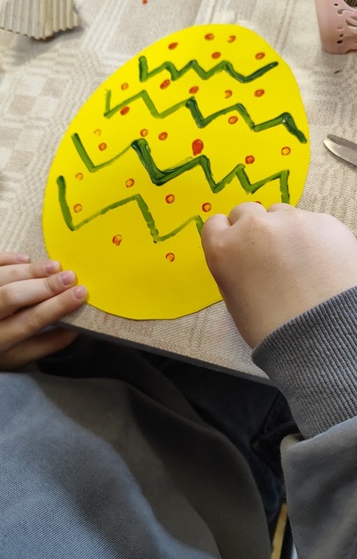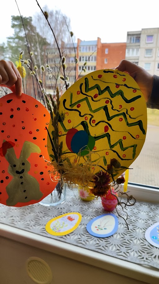 Edukacijos metu vaikai piešė, klijavo, dekoravo ir kūrė šventinius Velykų papuošimus.