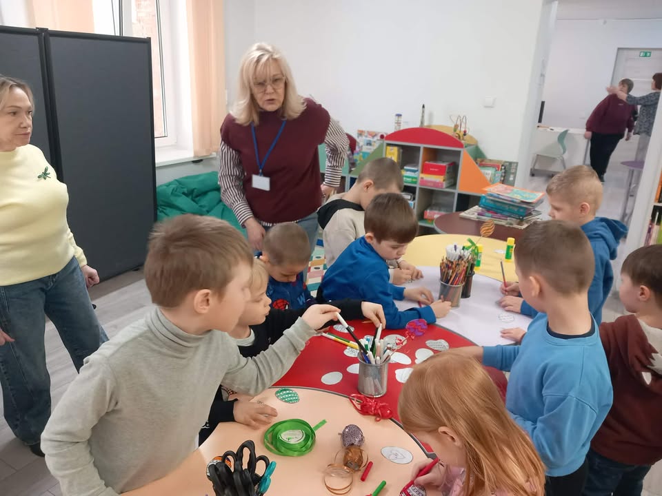 Mažieji kūrė popierinius kiaušinius. Smagūs velykiniai darbeliai ne tik lavino vaikų kūrybiškumą, bet ir supažindino juos su Velykų tradicijomis.