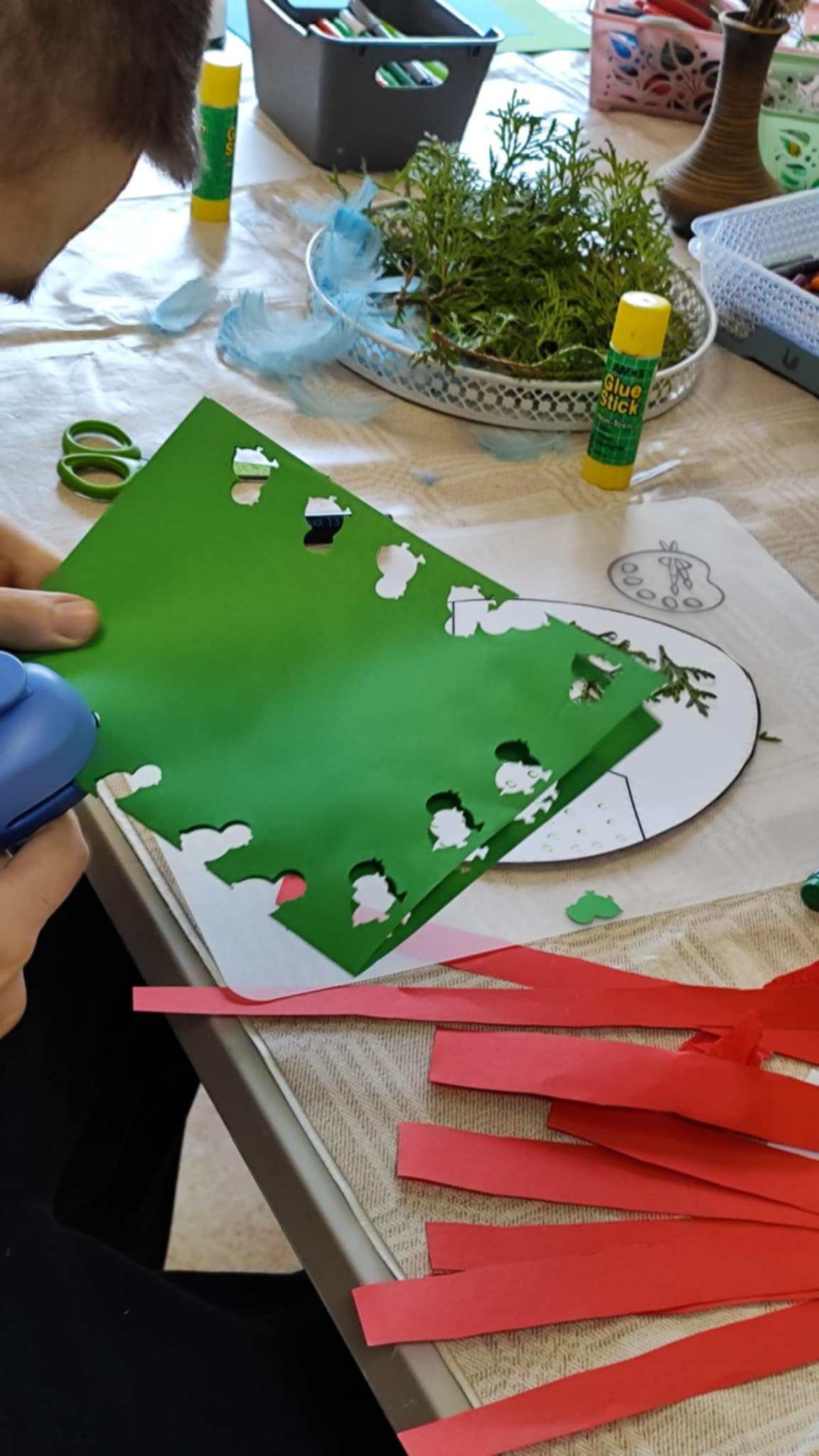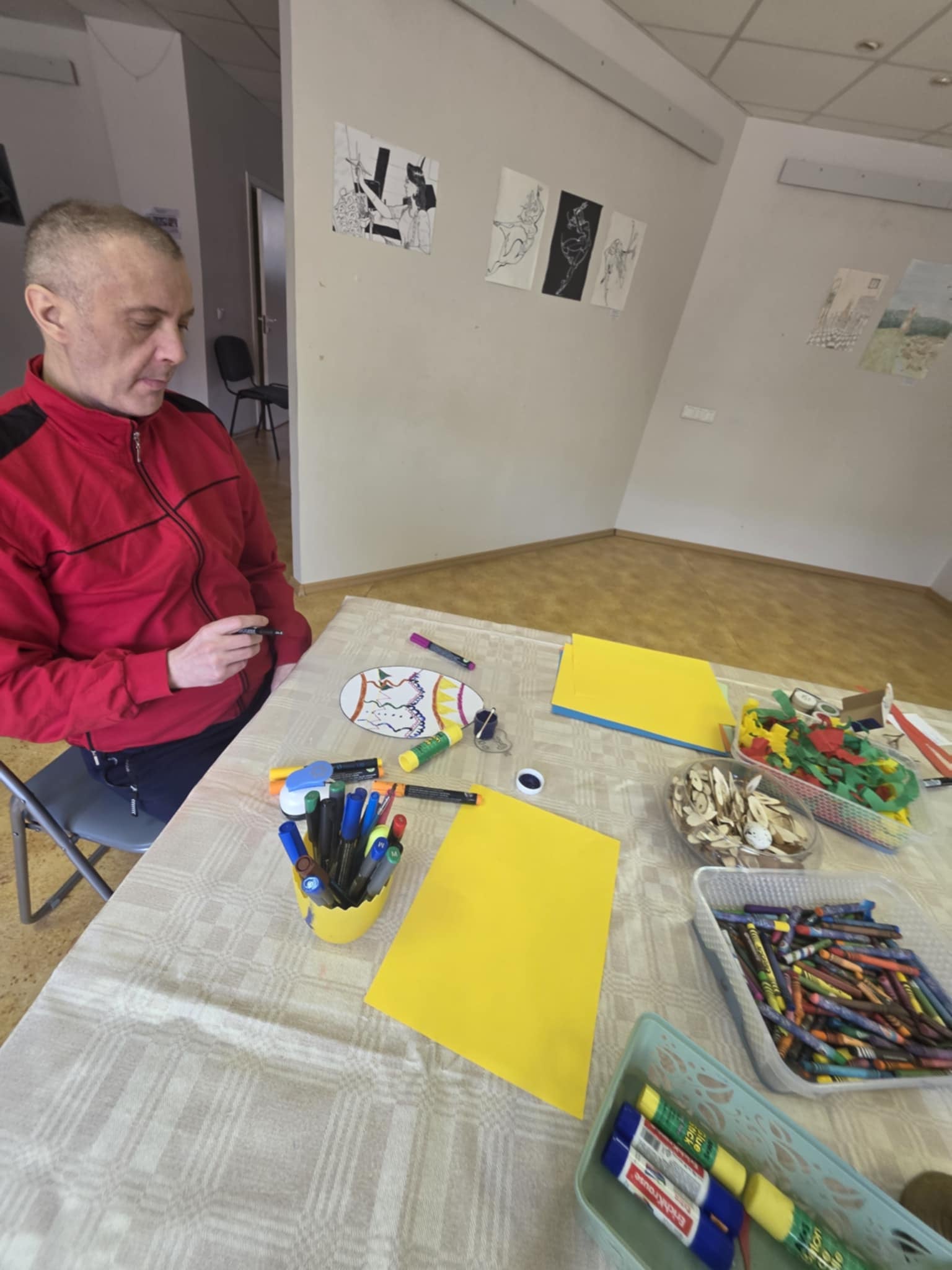 Po pažintinės dalies dalyviai įsitraukė į velykinę kūrybinę edukaciją – margučių kūrimą. Ant stalų nugulė spalvotas popierius, žirklės, įvairių raštų idėjos, o netrukus prasidėjo kūrybinis procesas: dalyviai rinkosi spalvas, derino ornamentus, kruopščiai kirpo ir dekoravo. Įdomi veikla paskatino bendravimą – dalyviai dalijosi idėjomis, patirtimi ir nuotaika.